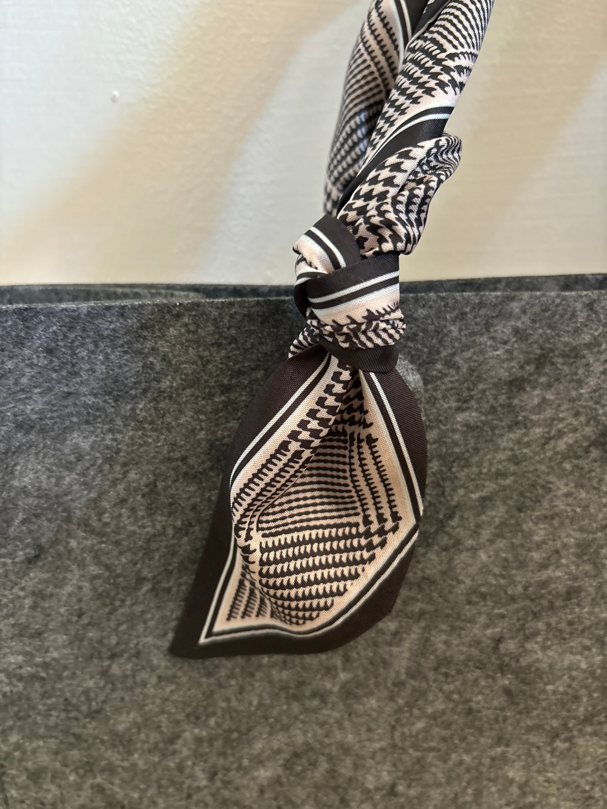 Our personalized felt bag is the ideal accessory for those who love combining style and practicality . Made of soft and durable felt, it is available in brown or gray and can be enhanced by choosing from different handle designs , to reflect your personality in every detail.