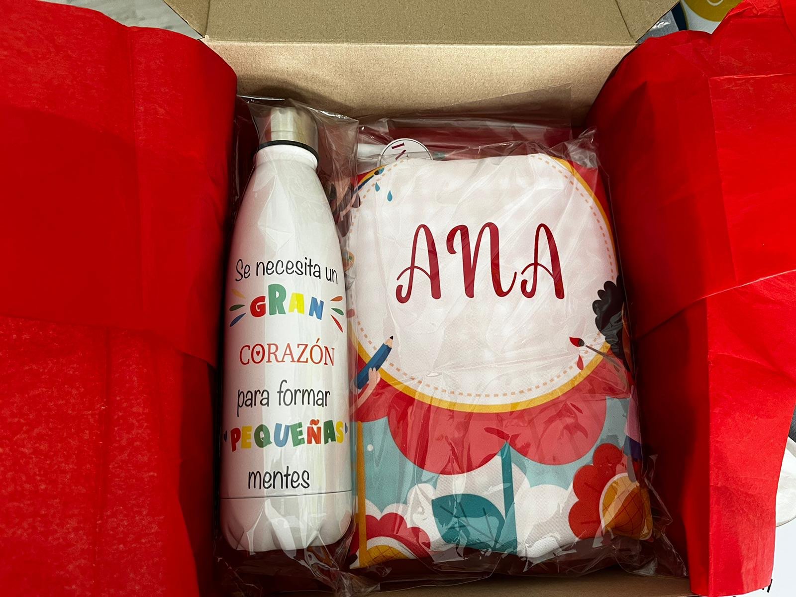 - Una botella personalizada , ideal para mantener hidratado al profesor durante la jornada escolar. Puedes personalizarlo con tu nombre, un mensaje especial o un diseño único.