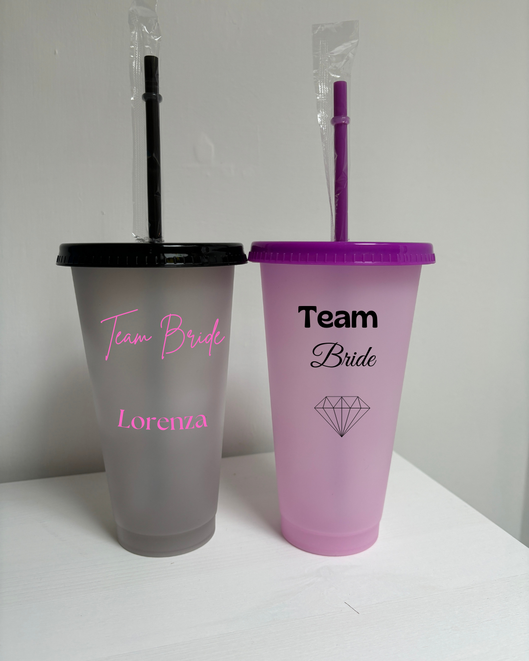 Brinda alla sposa con stile grazie ai nostri bicchieri di plastica riutilizzabili personalizzati! Perfetti per festeggiare senza pensieri, sono l’accessorio ideale per un addio al nubilato indimenticabile.
